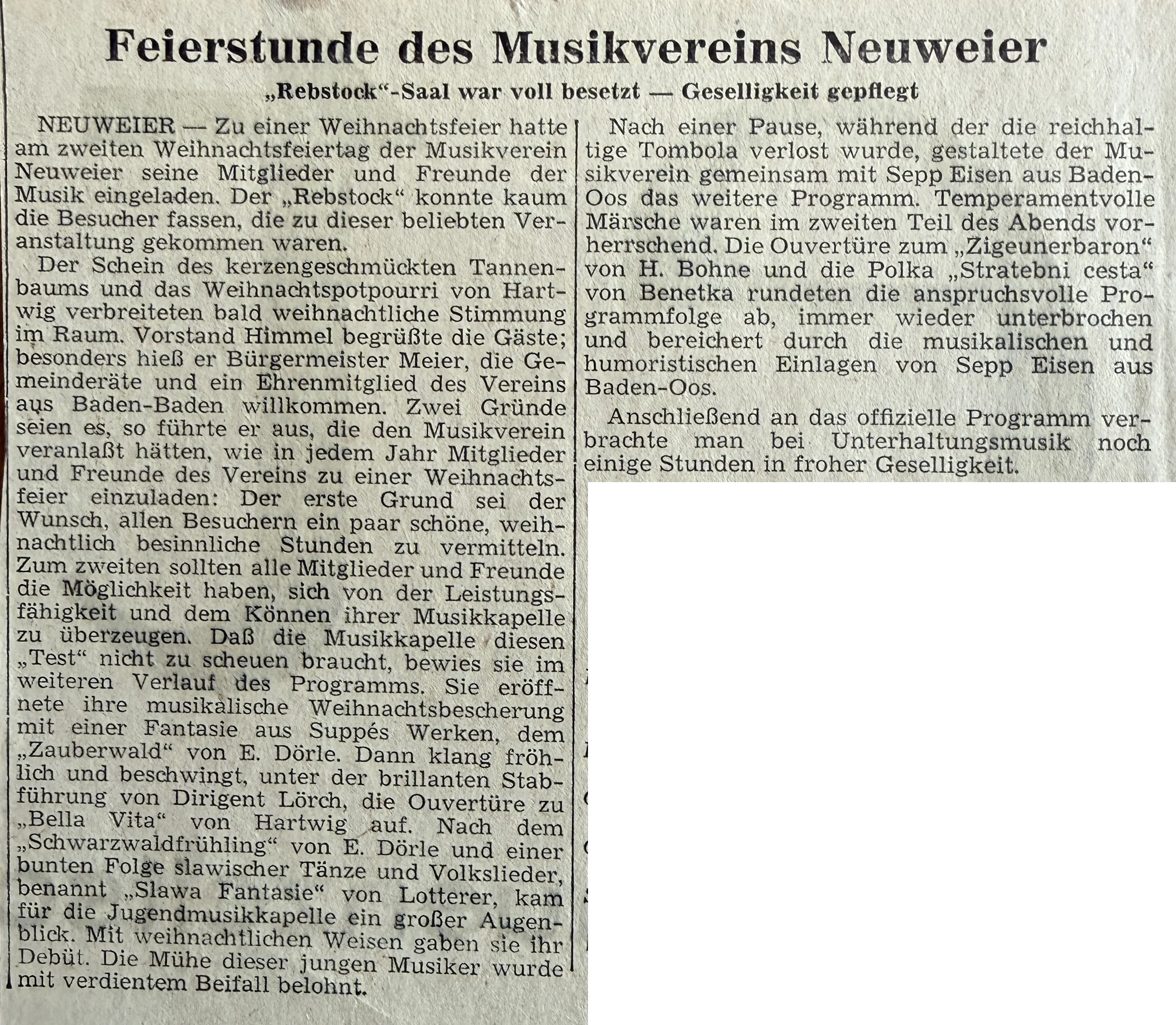 Zu einer Weihnachtsfeier hatte am zweiten Weihnachtsfeiertag der Musikverein Neuweier seine Mitglieder und Freunde der Musik eingeladen. -