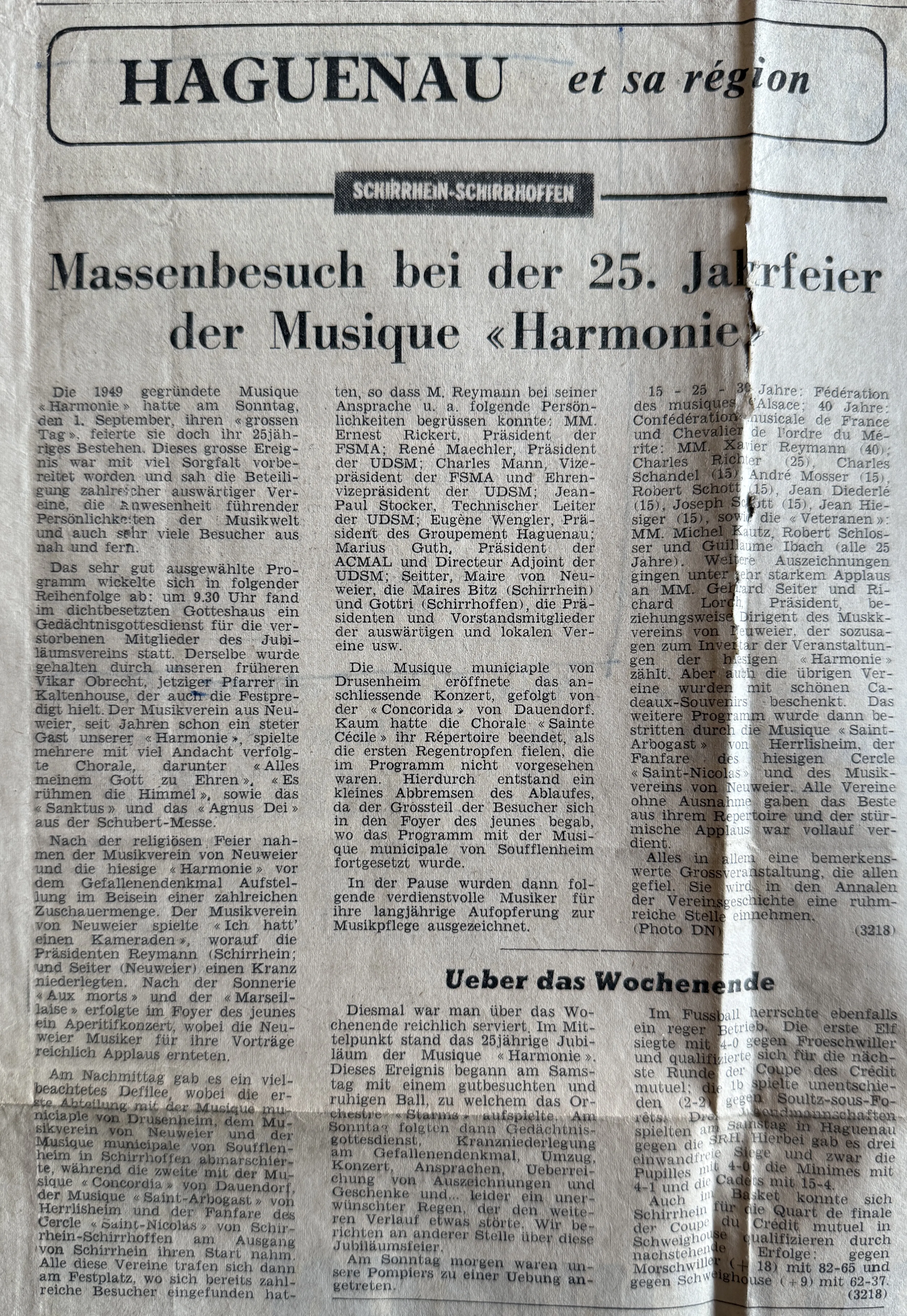 1974.09.05 Presse Elsass - Glanzvolles 25. Gründungsfest der Musique "Harmonie" Schirrhein-Schirrhoffen